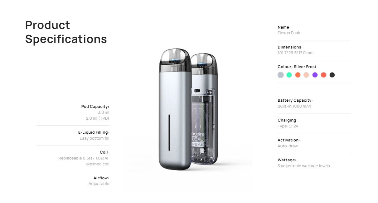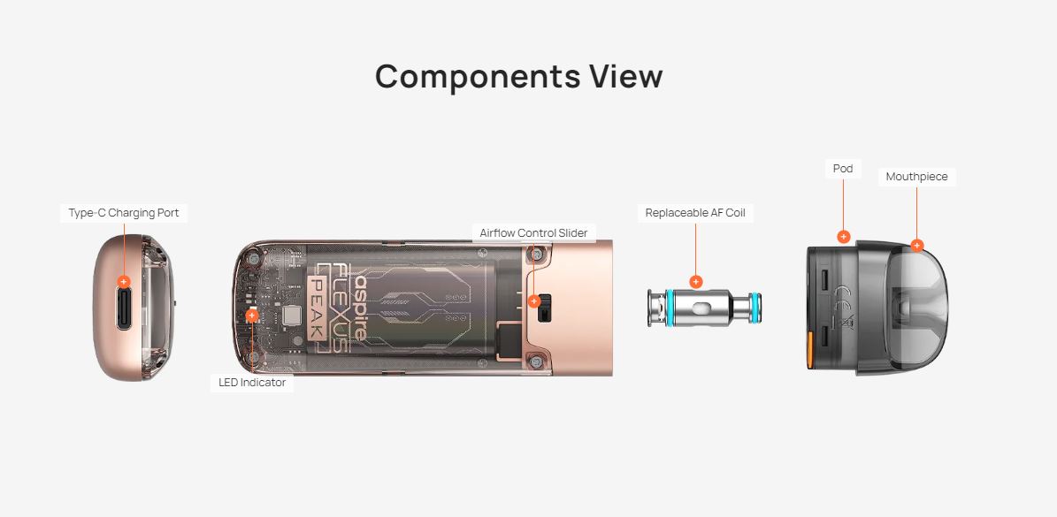 Heredando el ADN de sabor de la serie Flexus, el Flexus Peak ofrece un sabor puro gracias a las aclamadas resistencias AF de Aspire, garantizando durabilidad y un sabor perfecto en todo momento.