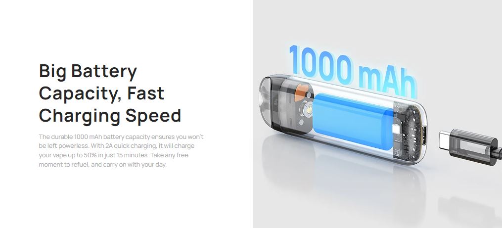 Con una batería duradera de 1000 mAh, el Flexus Peak garantiza que no te quedes sin batería. La carga rápida de 2A permite cargar hasta el 50% en solo 15 minutos, para recargar en cualquier momento del día.