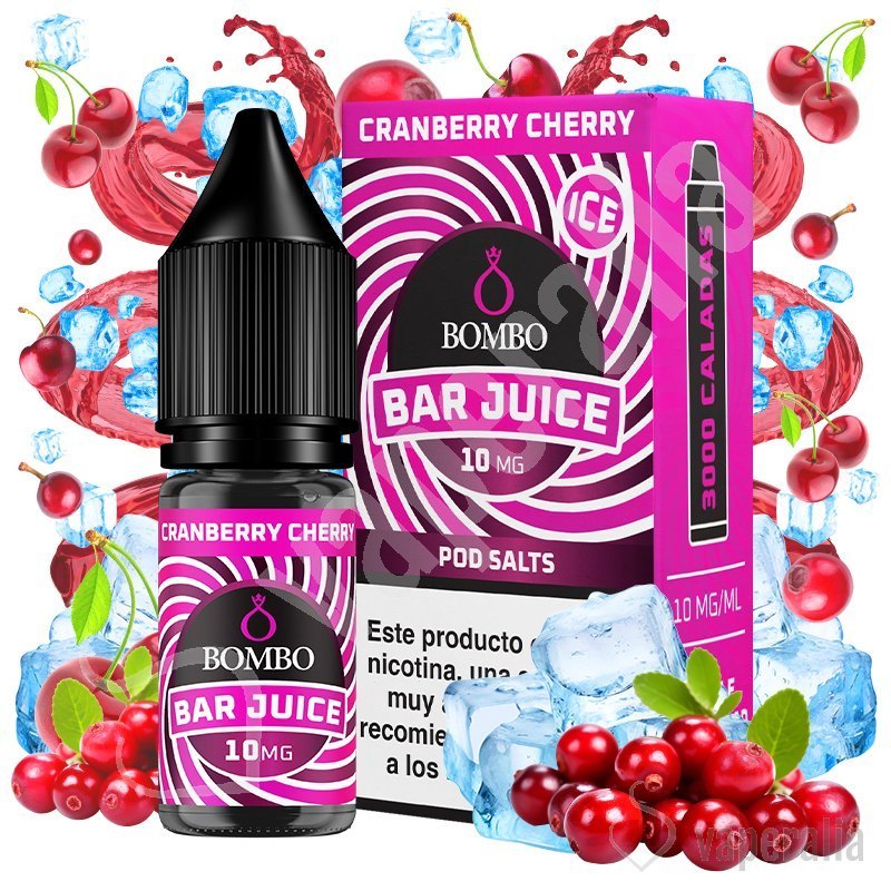 El líquido Cranberry Cherryde Bar Juice by Bombo es el equilibrio vibrante entre el punto ácido del arándano rojo y la dulzura profunda de la cereza, creando una mezcla frutal única.