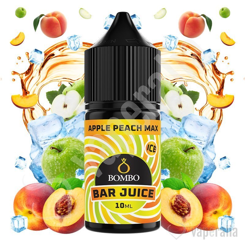 El aroma MiniLongfill Apple Peach Max de Bar Juice by Bombo es la mezcla perfecta de manzana y melocotón, con una intensidad extra que multiplica el sabor.