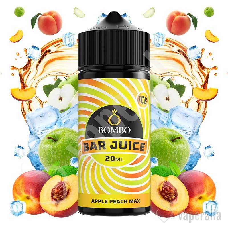 El aroma Apple Peach Max de Bar Juice by Bombo en formato Longfill, es la mezcla perfecta de manzana y melocotón, con una intensidad extra que multiplica el sabor.
