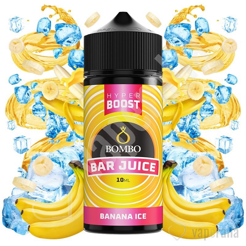 El aroma Banana Ice de Bombo Bar Juice Hyper Boost by Bombo es el sabor a banana más intenso jamás logrado. Una explosión de sabor sin precedentes y altamente refrescante.