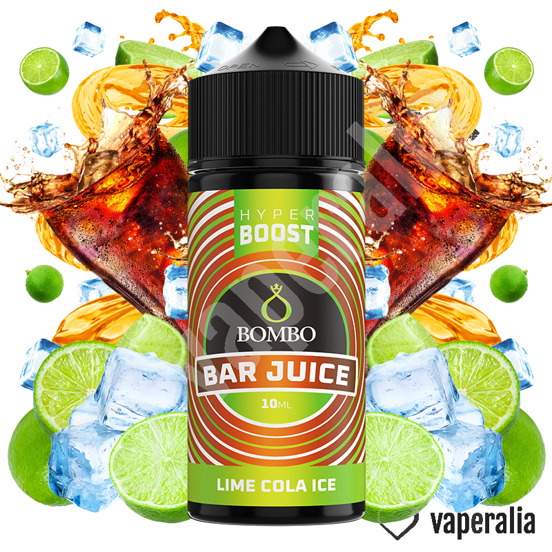 El aroma Lime Cola Ice de Bombo Bar Juice Hyper Boost by Bombo es el sabor más fiel a un refresco de cola, con un toque ligero de lima con un toque final de frescor.