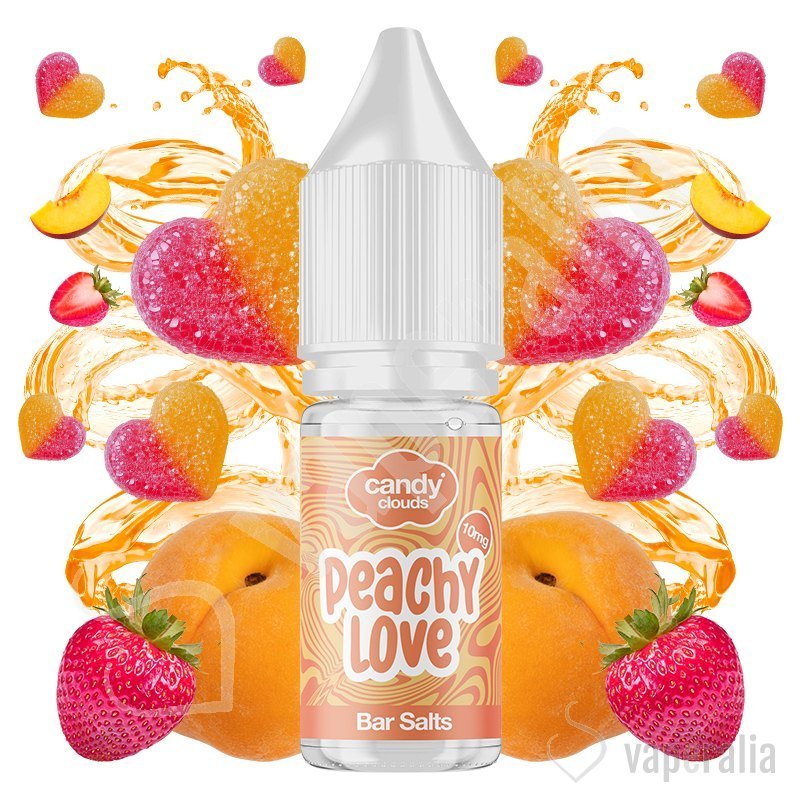 El líquido Peachy Love de Candy Clouds Salts sabe a melocotón maduro y fresa suave en una combinación que recuerda a las gominolas blandas en forma de corazón. Un perfil dulce con un toque frutal natural.