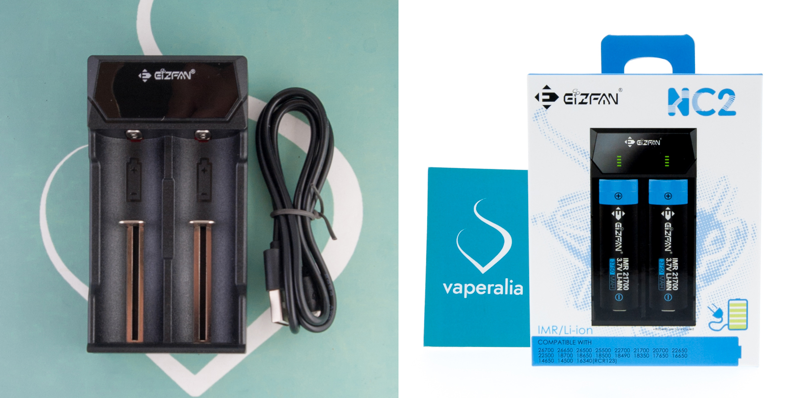 El cargador NC2 de Eizfan es un cargador para 2 baterías, con un diseño compacto y un peso liviano que lo convierten en un producto muy cómodo de portar. Este cargador es apto para todo tipo de baterías cuyo diámetro no supere los 26mm y su altura se encuentre entre los 34mm y los 74mm.