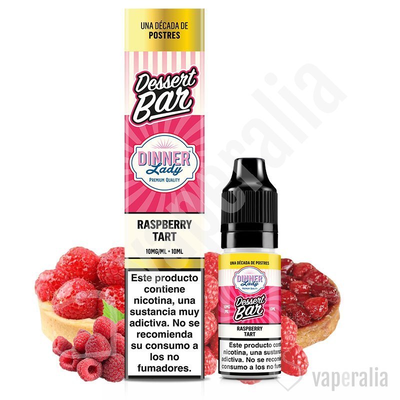 El líquido Raspberry Tart de Dinner Lady Salts de la gama Dessert Bar, es un dulce sabor a tarta rellena de unas ácidas frambuesas. Es el sabor perfecto para los amantes de los pasteles.