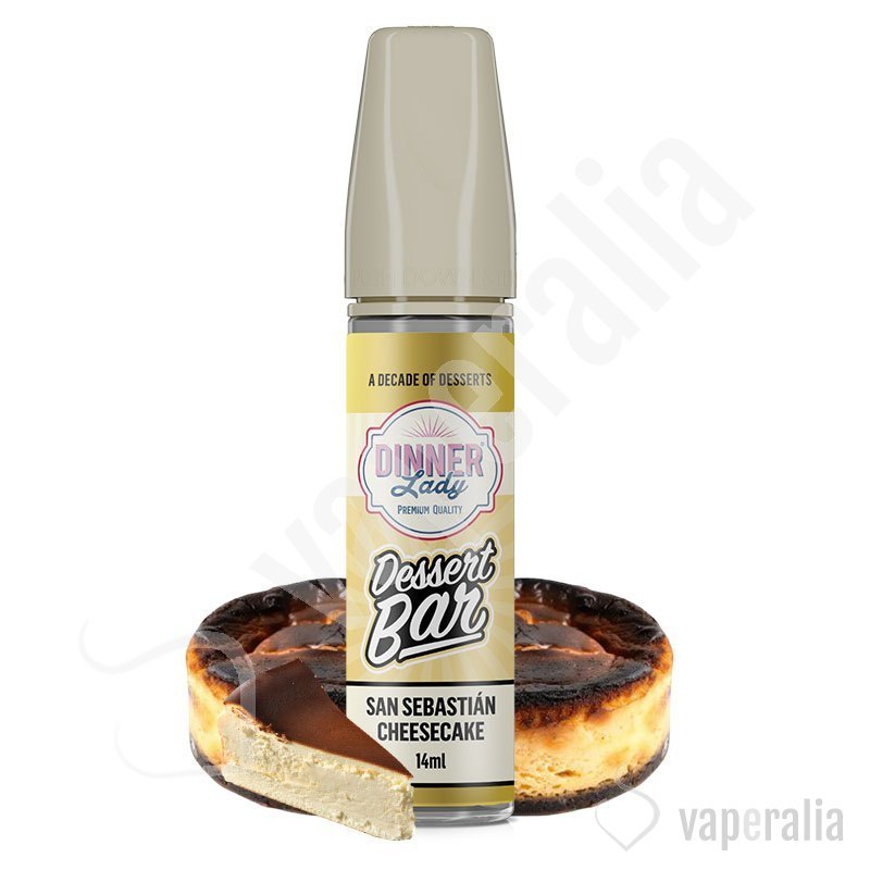 El aroma San Sebastian Cheesecake de Dinner Lady en formato Longfill de la gama Dessert Bar, es una deliciosa tarta de queso cremosa con una capa caramelizada al más puro estilo de San Sebastián.