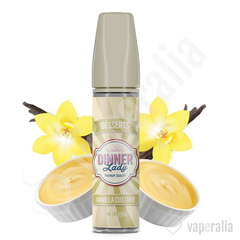 El aroma Vanilla Custard de Dinner Lady en formato Longfill, sabe al clásico sabor de unas deliciosas natillas de vainilla. Es perfecto para los amantes de los postres.
