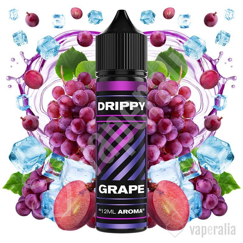 El aroma Grape de Drippy en formato Longfill, ofrece un sabor explosivo a uva, con matices intensos y dulces que envuelven el paladar desde el primer momento.