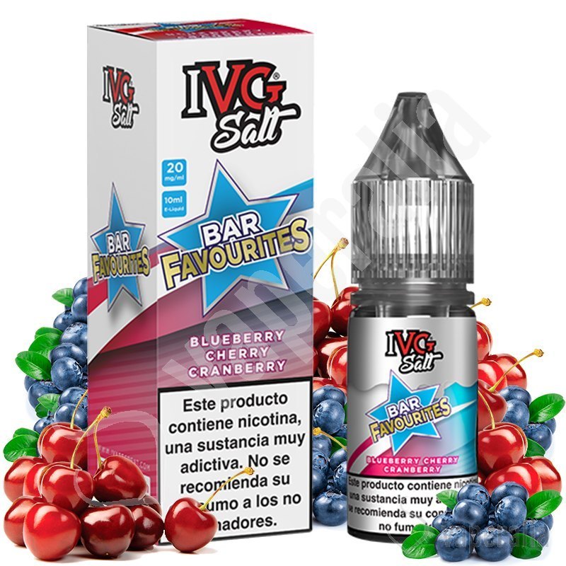 El líquido Blueberry Cherry Cranberry de la gama Bar Favourites de IVG Salts ofrece un sabor agridulce a intensos arándanos azules y cerezas maduras.