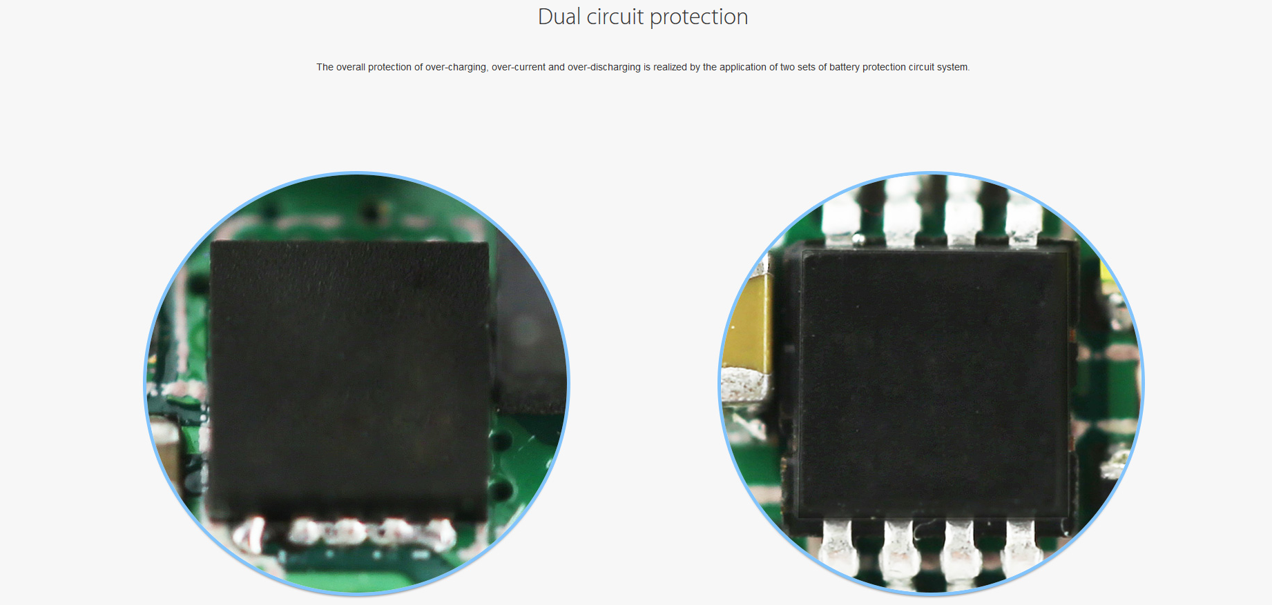 La protección de sobre carga, sobre corriente y sobre descarga se realiza mediante dos circuitos de protección de batería