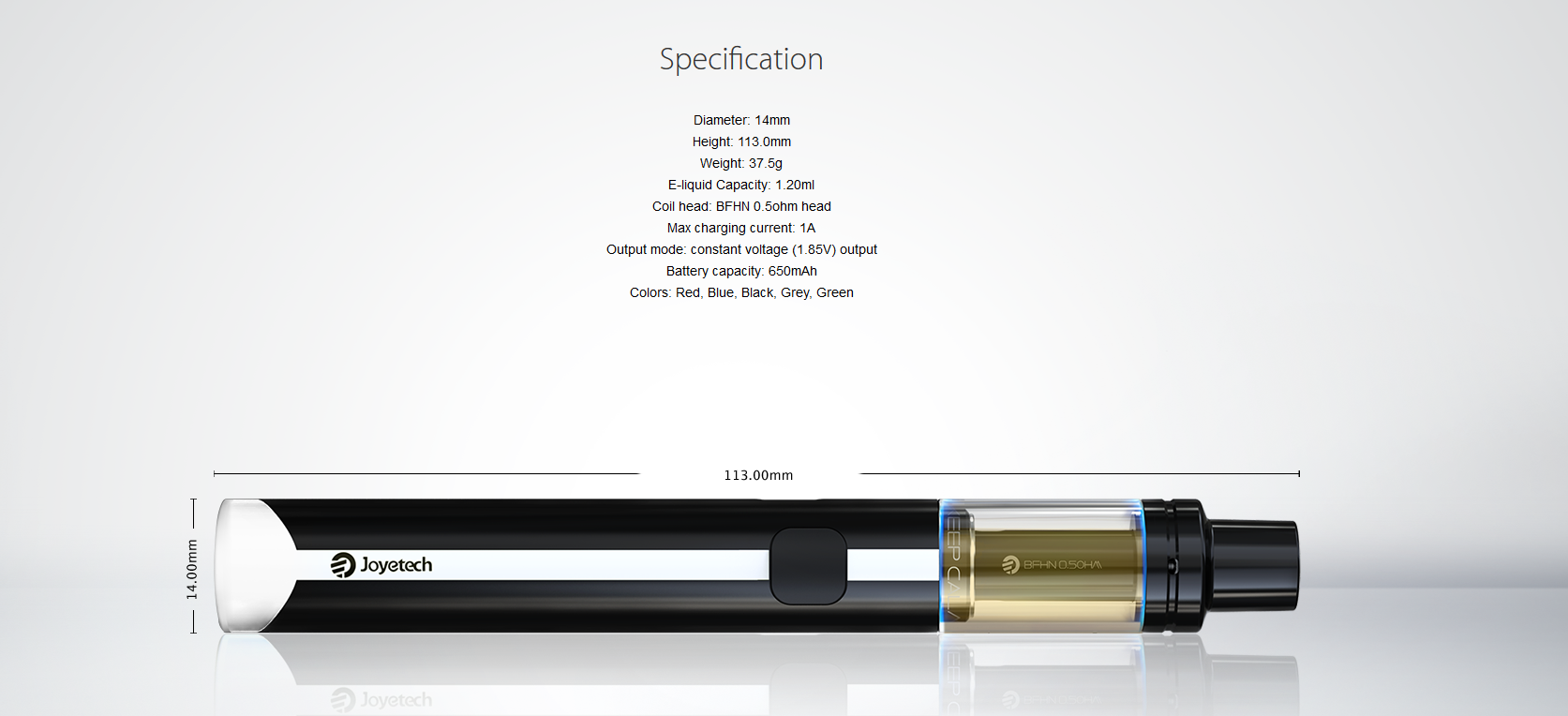 Batería de 650mAh capaz de proporcionar 350 caladas por carga. Carga de 1A. Aproximadamente 150 caladas en cada depósito lleno de 1.2 ml. Salida baja de 1.85V.