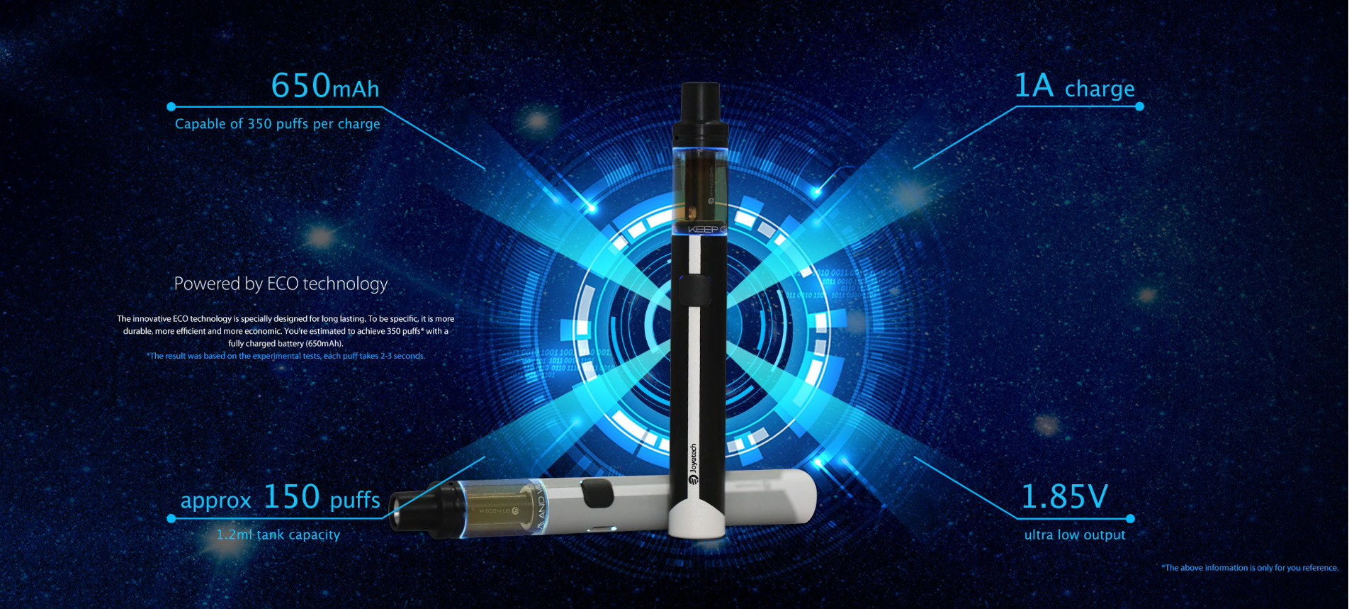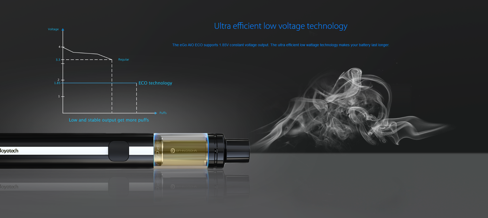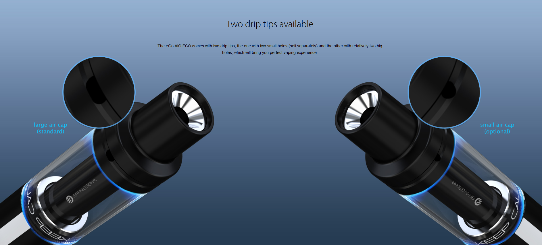 El kit EGO AIO ECO de Joyetech dispone de una batería de 650 mAh además de contar con dos modos de entrada de aire intercambiando las boquillas. Joyetech nos ofrece un producto de reducidas dimensiones muy sencillo de usar y sobre todo limpio.