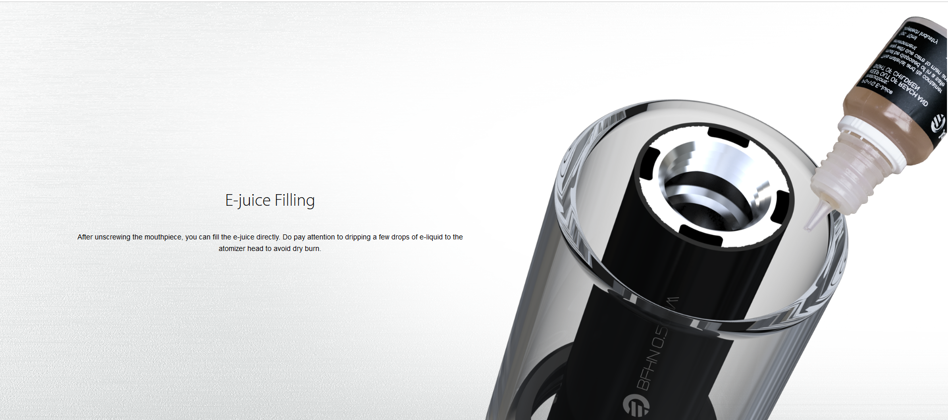 Desenrosca la boquilla y ya puedes rellenar el atomizador de tu líquido favorito. Procura poner unas gotas en la resistencia, si es nueva, para prevenir quemarla.