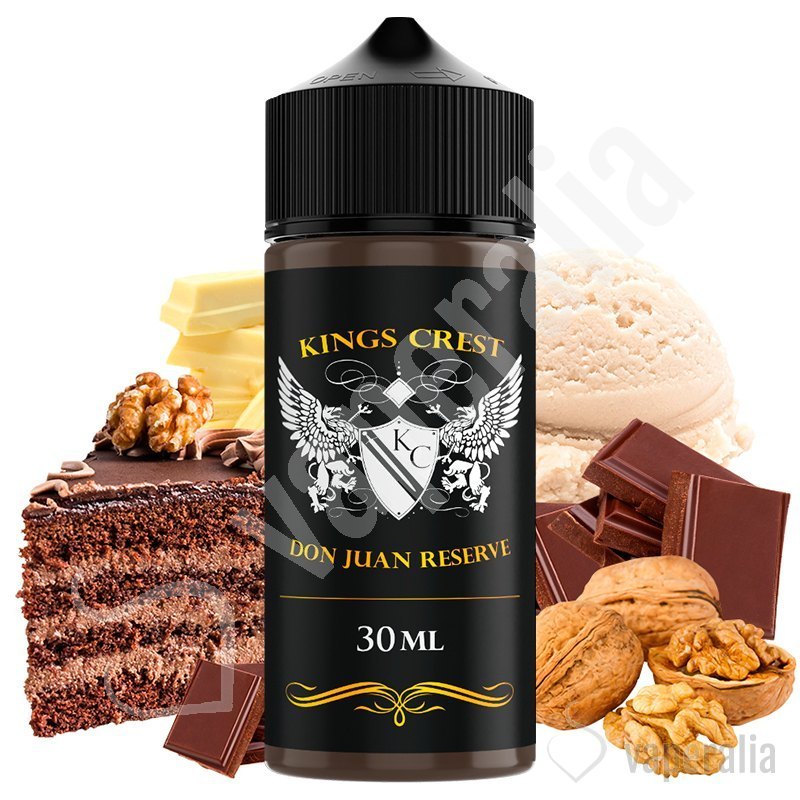 El aroma Don Juan Reserve de Kings Crest nos sorprende con esta tarta de chocolate recubierta con mantequilla de nueces pecán y crema batida. Características:Envase: Botella chubby gorilla de 30 ml Disolución recomendada: 20% Maceración: mínimo 4/5 días, óptimo 20 días Tapón a prueba de niñosAdvertencia: este producto es un aroma y debe...