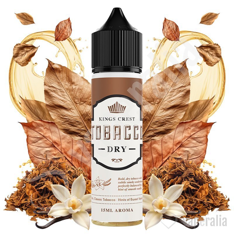 El aroma Tobacco Dry de Kings Crest en formato Longfill, es una mezcla de tabaco con un sutil fondo de crema de vainilla. Es un sabor con carácter, ideal para los amantes de los sabores clásicos con un toque dulce.