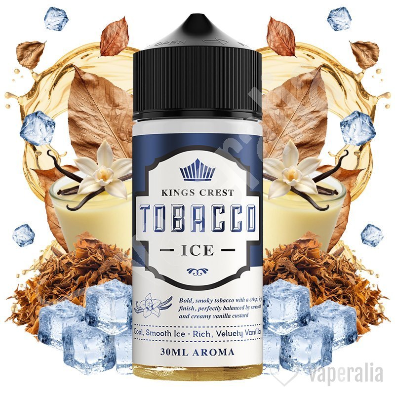 El aroma Tobacco Ice de Kings Crest en formato Longfill, es una mezcla de tabaco y crema de vainilla con un toque final de menta helada. Comienza con un sabor suave y termina con un giro mentolado.