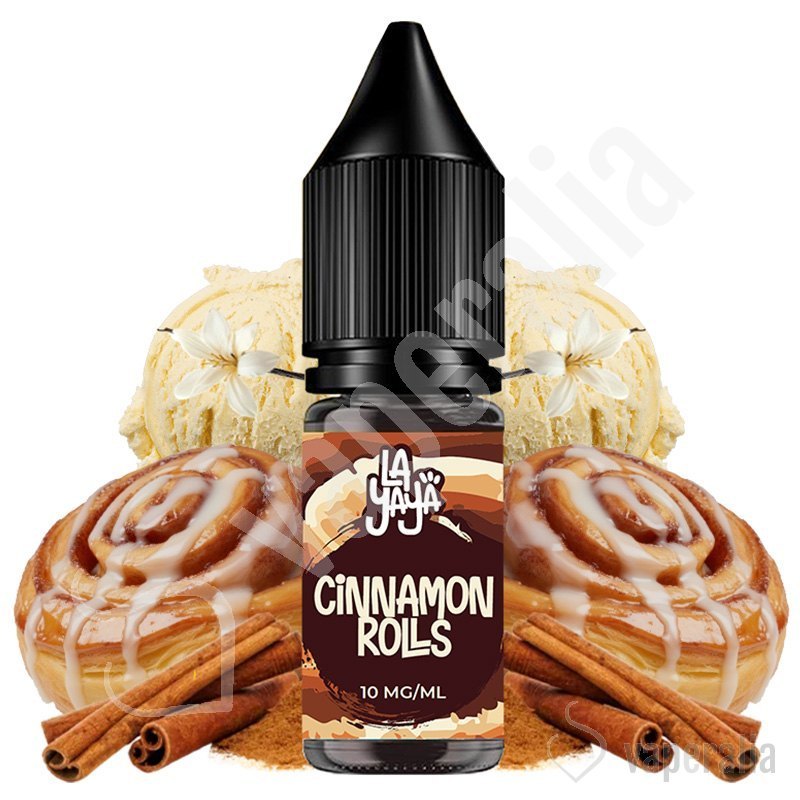 El líquido Cinnamon Roll de La Yaya Salt sabe a deliciosos cinnamon rolls recién horneados, con el dulzor de la canela perfectamente equilibrado con un toque de glaseado cremoso.