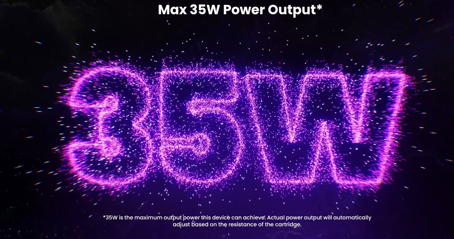 La potencia máxima que ofrece el Galaxy T360 es de 35W, pudiendo ajustarse automáticamente dependiendo de la resistencia del cartucho.
