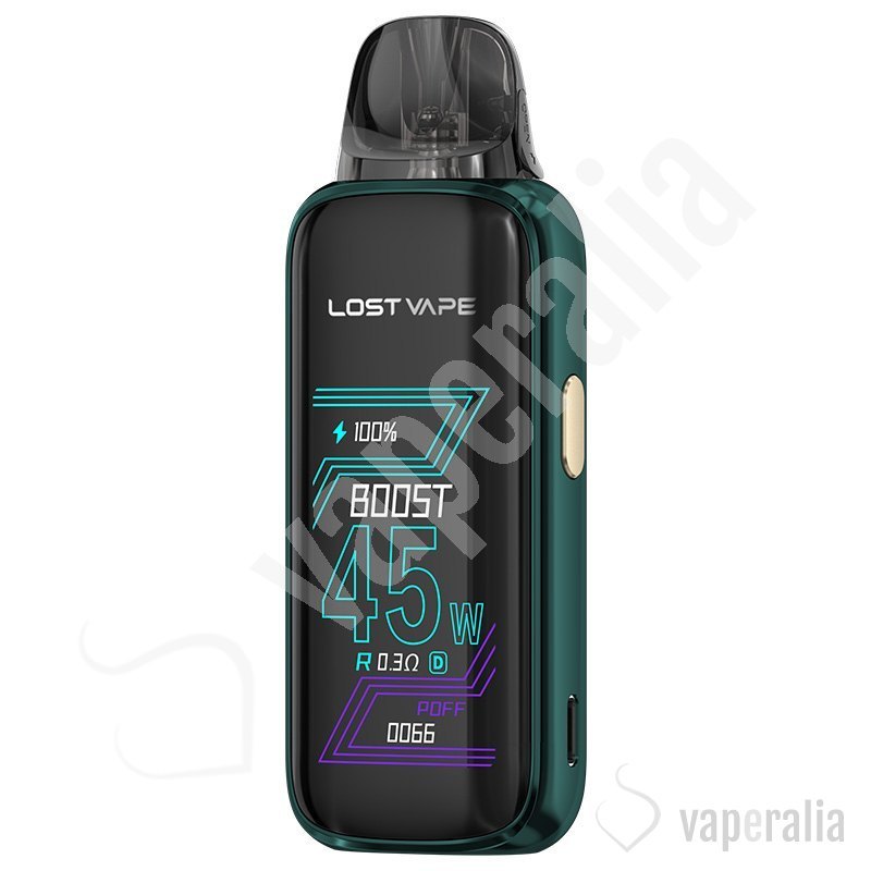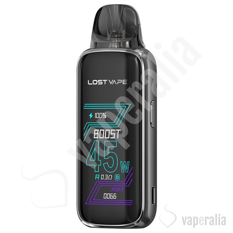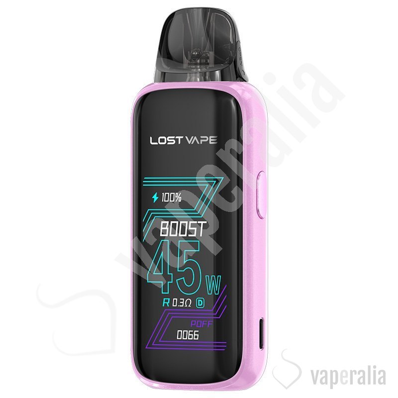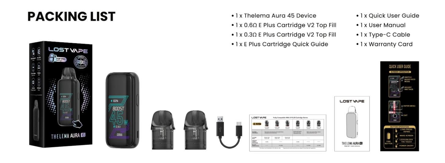 El dispositivo Thelema Aura 45 de Lost Vape combina potencia de hasta 45W y una batería duradera de 1600 mAh en un dispositivo muy ligero. Con el cartucho mejorado E Plus Cartridge V2, ofrece una experiencia suave y personalizable.