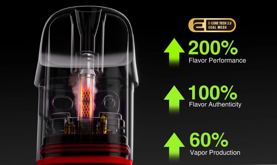 Con el Thelema Elite DM45 experimentarás un sabor más profundo y suave con el cartucho E Plus Dual Mesh, el cual cuenta con una tecnología E-Core 3.0 y un diseño de hasta 5 capas anti fugas.