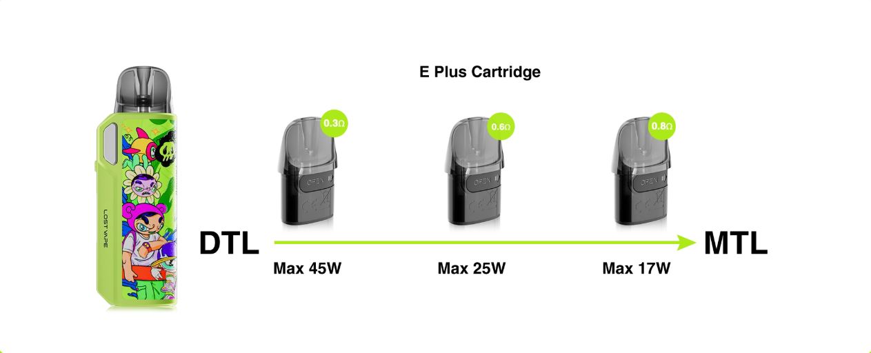 Disfruta del mejor sabor gracias a su compatibilidad con los cartuchos E Plus Dual Mesh y los E Plus.