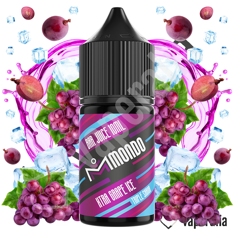 El aroma Xtra Grape Ice de Mondo en formato MiniLongfill, combina la dulzura natural y la acidez sutil de las mejores uvas, creando un sabor jugoso y vibrante y fresco en cada inhalación. Será como morder una deliciosa uva madura que te hará querer más.