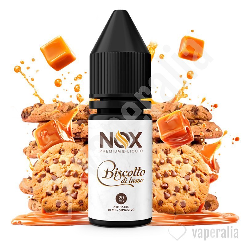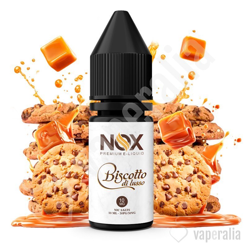 El líquido Biscotto di Lusso de Nox Nic Salts sabe a deliciosas y crujientes cookies caseras recién horneadas, con crema de caramelo tostado y notas de chocolate. Una magistral receta llena de matices suculentos.