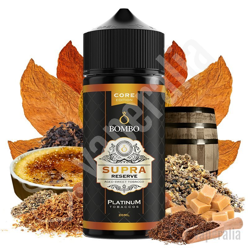 El aroma Supra Reserve de Platinum Tobaccos by Bombo Core Edition en formato Longfill, es la unión del mejor tabaco dulce con equilibrados matices acaramelados y tostados que lo sitúa en el siguiente nivel dentro de los RY4. Premio al mejor tabaquil en Vapexpo Spain 2022.