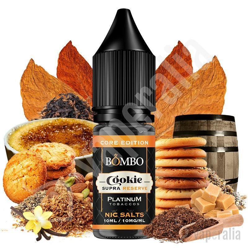El líquido Cookie Supra Reserve de Platinum Tobaccos Nic Salts by Bombo Core Edition es una variación de Supra (Mejor Tabaquil en Dubai 2023 y Vapexpo 2022), famoso por su exquisito sabor a tabaco dulce con matices acaramelados y tostados; combinado con tiernas galletas artesanas.