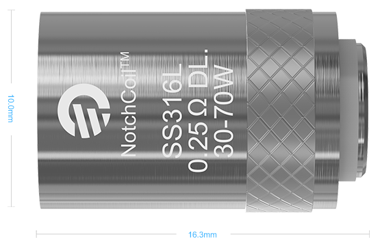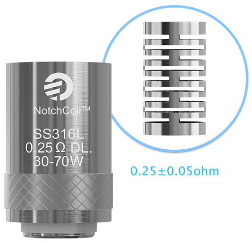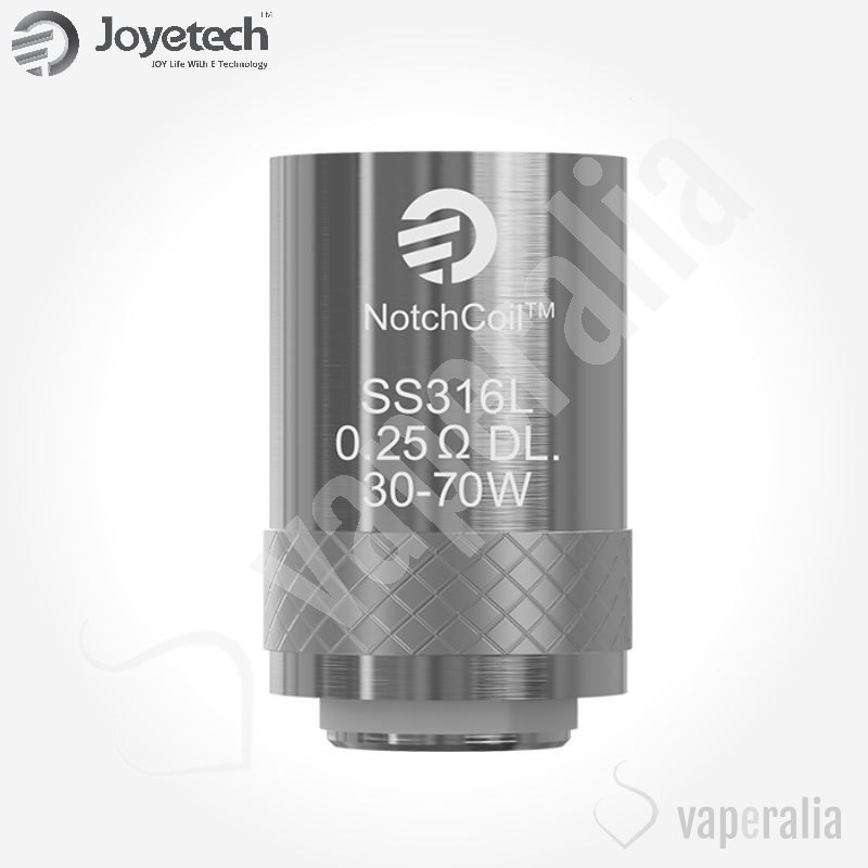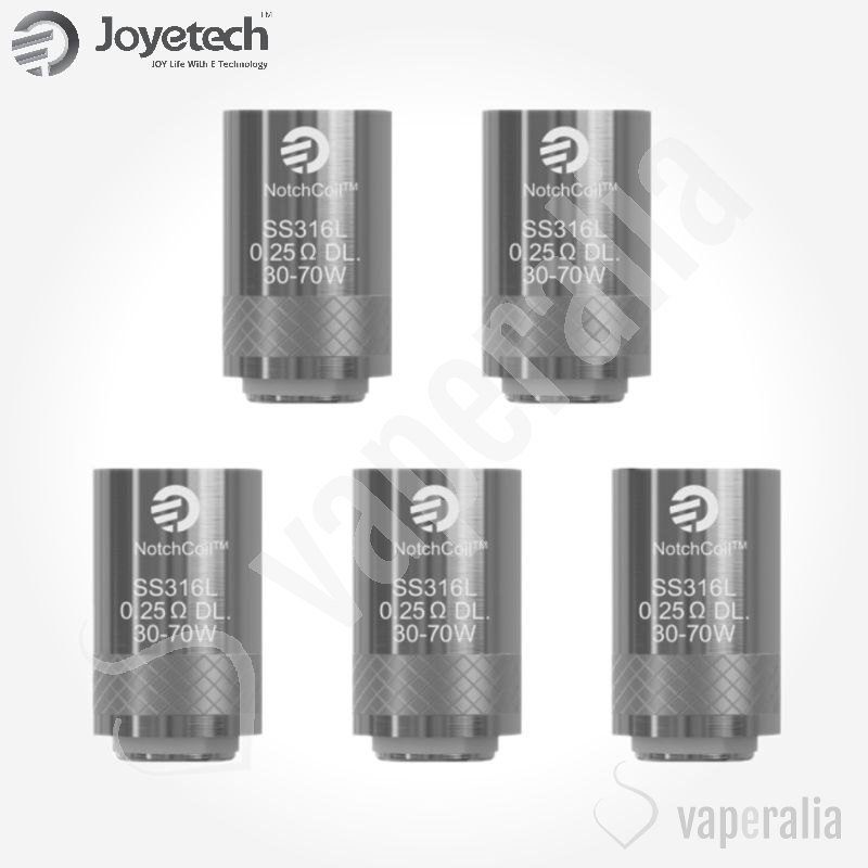 Nuevas resistencias Notchcoil DL (directo a pulmón) de Joyetech son resistencias de acero con una mayor superficie de evaporación, el tiempo de vida de las bobinas es mayor y se puede utilizar bajo condiciones de alta potencia.
