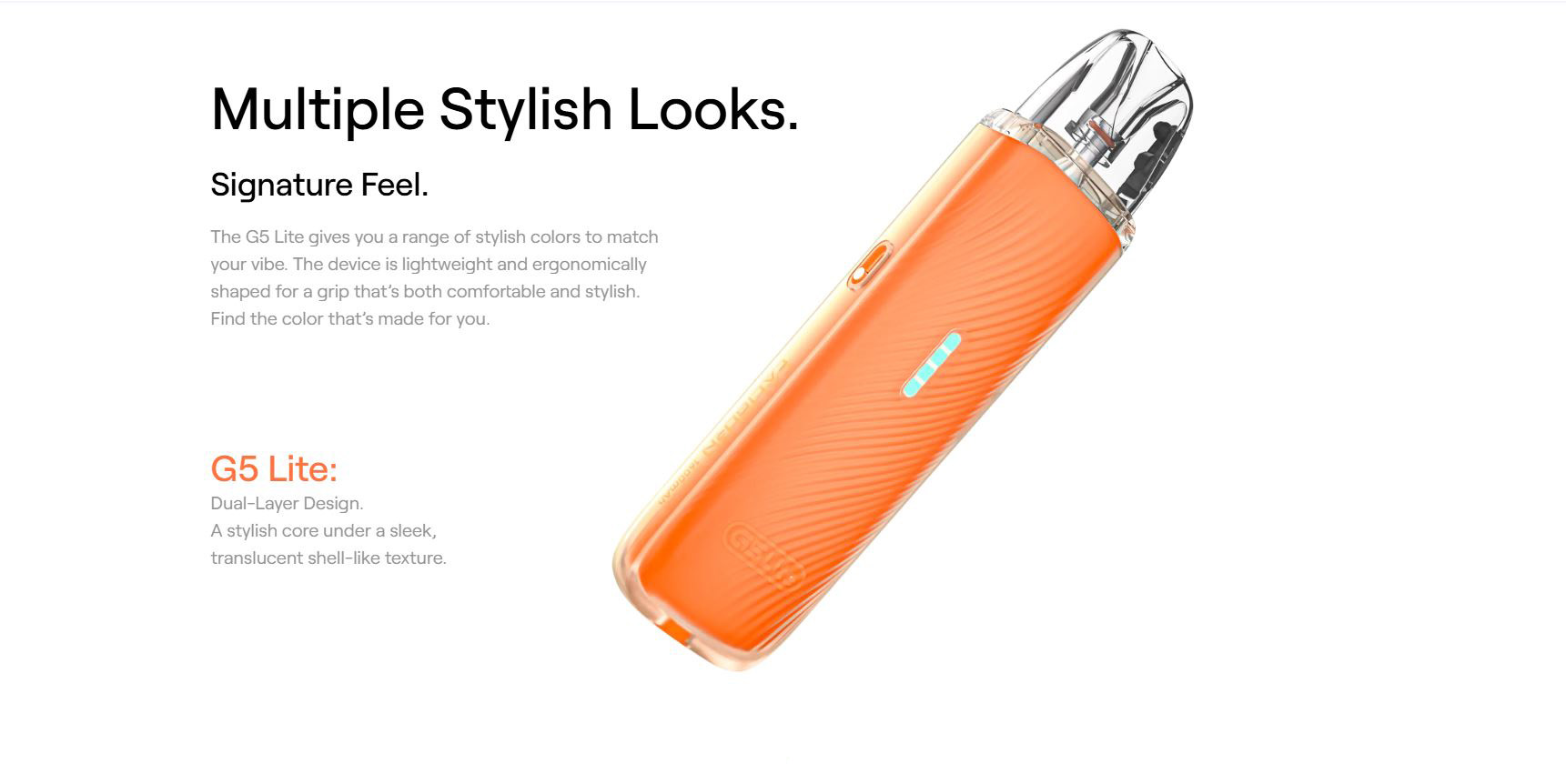 El Caliburn G5 Lite hace match a la perfección con tu estilo. El dispositivo es ergonómico y ligero, ideal para ti.