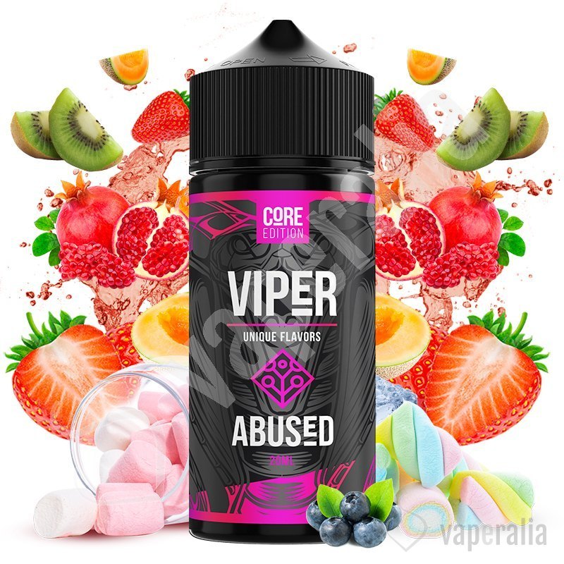 El aroma Abused de Viper Core Edition ofrece una fórmula perfeccionada para el deleite de los amantes de los frutales con un núcleo de fresa y melón, un estallido de granada, kiwi, frutas del bosque y malvavisco.