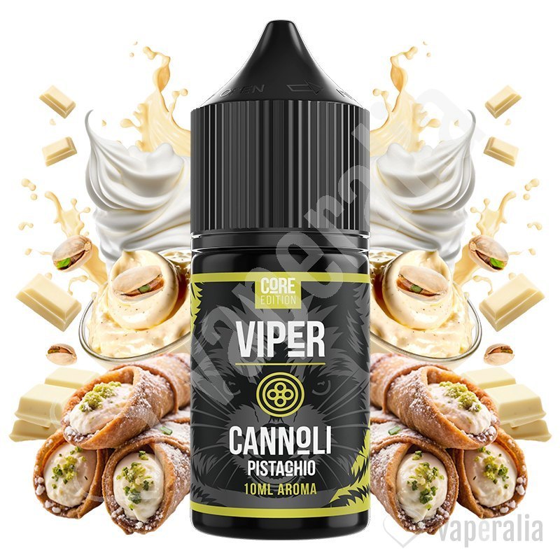 El aroma MiniLongfill Cannoli Pistachio de Viper Core Edition combina la rica y cremosa esencia del cannoli con un toque distintivo de pistacho. La fusión con chocolate blanco aporta suavidad, mientras que la crema de ricotta añade una profundidad sedosa.