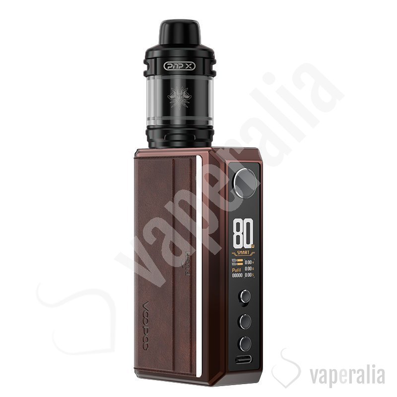 El kit Drag 5 de Voopoo presenta un diseño en cuero, exclusivo y desmontable para facilitar el reemplazo de la batería. Con un rendimiento óptimo gracias a sus 177W, 2 baterías 18650 y a un control inteligente de duración. El Uforce-X Tank destaca por su resistencia PnP, y las dobles entradas de aire para garantizar una buena producción de vapor, evitando así las fugas de líquido.