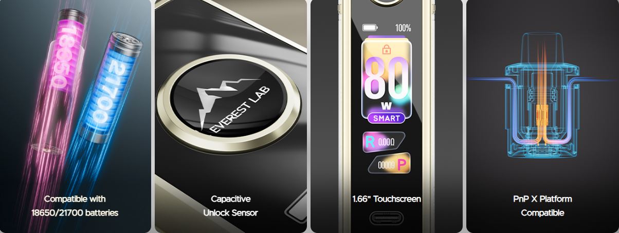El Drag X3 es compatible con las baterías 18650 y 21700. Además, cuenta con un sensor que se desbloquea, utiliza resistencias PnP X y cuenta con una pantalla táctil de 1.66".