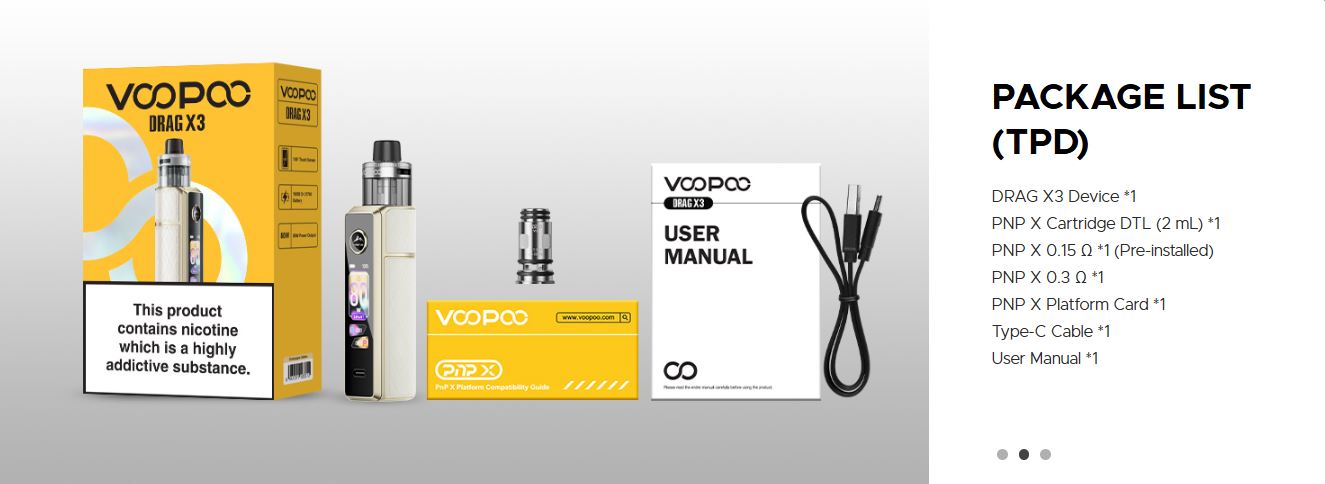 El Drag X3 de Voopoo impresiona por su excelente rendimiento, a pesar de su tamaño compacto. Gracias a una batería 18650, ofrece una entrega de potencia de hasta 80W y viene equipado con el PnP X, que ofrece un sabor exquisito durante mucho más tiempo.